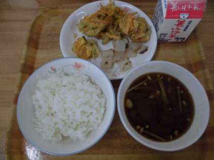 夏野菜のかきあげは,夏野菜のゴーヤ・かぼちゃが入っています。