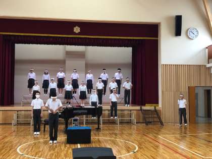 9月9日(水),8年生は明日の音楽祭に向けて,リハーサルを行いました。練習し始めた頃と比べると,とても成長しています。あと1日。最後までできることを見つけて,楽しんで本番にのぞんでほしいです。クラスで心を合わせて,ひとつのことに取り組む喜びを感じることができるといいです。