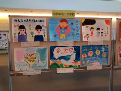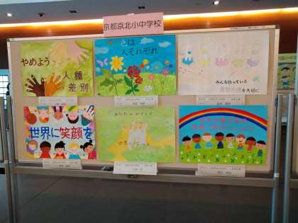 サンサ右京(右京区合同庁舎)の1階ロビーにおいて「右京区の小・中学生による人権啓発ポスター展」が行われています。本校からも前期課程6名,後期課程6名の計12名の代表生徒の作品が展示されています。「人権啓発ポスター」は図工,美術の授業の中で取り組んだもので,生徒が伝えたいメッセージが込められた作品に仕上がっています。9月22日まで展示されていますので,もし機会がありましたら,生徒たちの作品をぜひご覧ください。