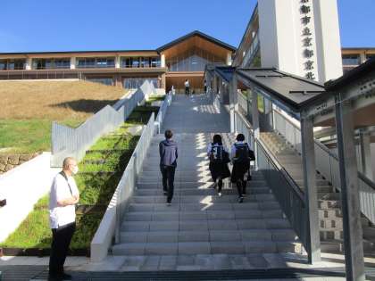 9月14日(月)の登校時に今年度初めてのあいさつ運動に取り組みました。今回のあいさつ運動は,学校運営協議会はぐくみ部会,PTA(生活委員会,本部役員)の合同開催で行いました。また当日は生徒会本部役員の皆さんも加わり,秋晴れの素晴らしい天候の中で行うことが出来ました。「挨拶(あいさつ)」の漢字には「心をひらく」という意味があります。今日は多くの方々の声かけにより,気持ちのよい声が京北小中学校に飛び交いました。今回の運動をきっかけとして,学校内に気持ちのよいあいさつの声が響き渡ることを目指して取り組んでいきたいと思います。