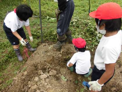 「こんないも,見つけたよ。」「おおっきいよ。」と次々に見せてくれました。
