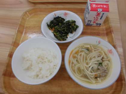 ・今日はかやくうどんでした。とり肉や野菜のうまみがだしにでていてとてもおいしかったです。油あげがうまみのだしをすってもっとおいしくなりました。まいにちおいしい給食をありがとうございます。