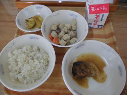 ★今日の給食はさつまいものかりんとうでした。見た目はあまそうでした。かおりはあまいかおりがしました。音はカリカリしていました。ふれたようすはざらざらでした。あじはあまいあじでした。気持ちはまた学校で食べたいです。
