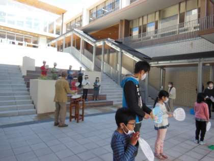 最初は,歌えませんでしたが,何度も練習するうちに,地域の方のように歌うことができるようになってきました。本来なら,地域の夏まつりで披露する予定でしたが,中止になってしまいましたので10月16日(金)に3年生で発表会をしました。