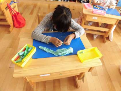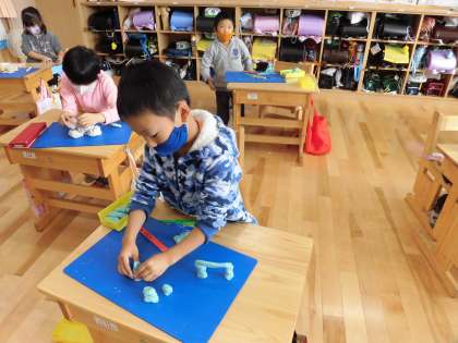 うれしかったことや楽しかったことを粘土で形にしました。学校生活の中でうれしかったことやお家の人と一緒に過ごして楽しかったことなど,それぞれ思い出をふりかえりながら,夢中になって作っていました。
