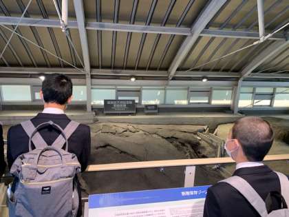 当時のまま残っている野島断層を見ながら、解説を聞き、学んでいます。