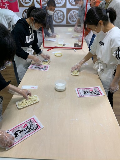 2時間目は代表者のうどん打ち体験と、うどんの作り方のお勉強です。