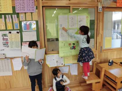 今日は,他のグループに自分たちの発表を見てもらいました。発表した後,他のグループから良いところや直した方がいいところを教えてもらいました。とうとう明日が1年生に向けての発表会です。1年生に分かりやすく伝えることができるように,一生懸命頑張ってほしいと思います。