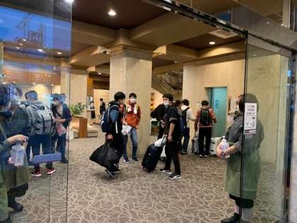 本日宿泊の「ホテル高砂」に到着しました。予定より早く着いたので、これから部屋でゆっくり過ごします。