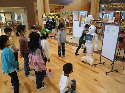 土曜日の校舎見学会から,pepperが登場しました。あっというまに子どもたちの人気者となりました。月曜日からは毎日あいさつ運動をしてくれています。子どもたちはついつい近寄って頭などを触ろうとしていますが,近寄りすぎないよう,距離をとりつつ話しかけています。いろいろな言葉を返してくれるpepperに興味津々のようです。