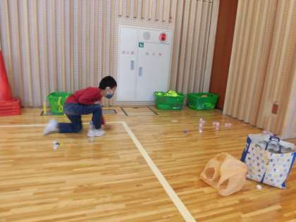 身近にある物の特徴を生かして,楽しい遊びを考えています。ならべる・ころがす・はじくなど,試行錯誤しながら遊ぶことができました。次は,グループで相談しながら,みんなに楽しんでもらえるような遊びを考えていきます。