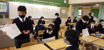 3分間7年生が発表し,そのあと1分で6年生からの質問に答えていました。