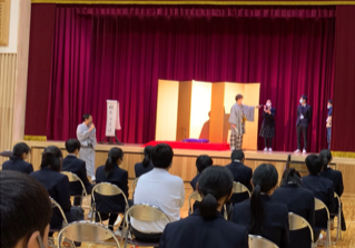 文化芸術鑑賞で,9年生の代表生徒が落語体験をさせてもらいました。