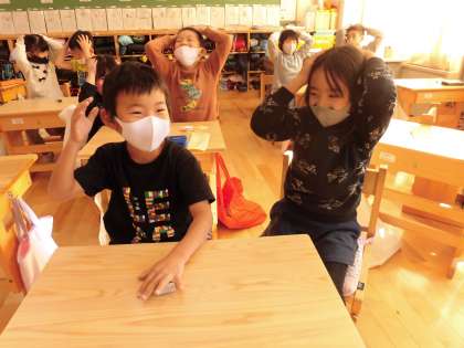 ALTの先生と一緒にキーワードゲームをして,野菜の名前を英語で言うことに慣れ親しんでいました。みんな笑顔で,とても楽しそうに活動していました。