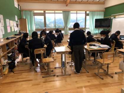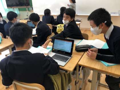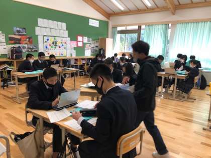 12月9日(水)。8年生ふるさと未来科では,「SDGSの視点を取り入れた,持続可能な京北のためのwithコロナイベントの企画」に取り組んでいます。来週は,グループで進めているイベント企画の中間報告を行います。今日は,報告のためのパワーポイント資料作成に取り組んでいます。