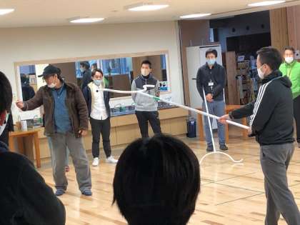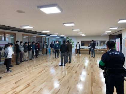 本日12月10日(木)午後,教職員の研修会を行いました。内容は,「不審者への対応」,「嘔吐物の処理」です。不審者対応では,右京警察署,京北交番から4名の方に来ていただき,さすまたを実際に使いながら,不審者にどのように対応すべきかを研修しました。「子どもには決して近づけない」「1人で対応せずに複数で対応する」等々,子どもを守るための原則を教えて頂きました。お忙しいところ来校いただきました右京警察署と京北交番の皆様,本当にありがとうございました。