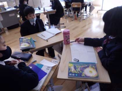 この時間では,考えに対する理由と根拠をグループで相談しました。