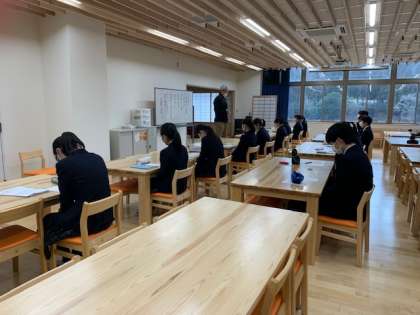 本日,前期選抜受検者の事前指導を行いました。校長先生から激励の言葉をいただき,進路主事の先生から諸注意を受けました。その後,学年の先生と受検に向けての最終確認をしました。