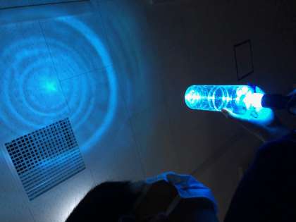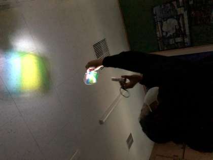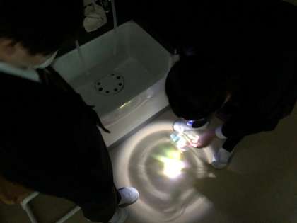 図画工作科の「光と場所のハーモニー」の学習では,プラスチック製の容器やカラーセロハンを使い,光を当てて自分だけの美しい空間を作りました。