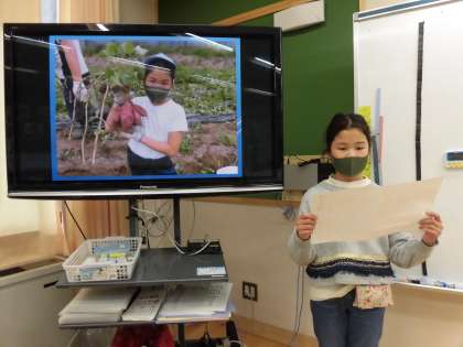 2年生になって,もうすぐ1年。この1年間を振り返り,一番心に残ったことを発表しました。例年とは違う1年だった分,それぞれの思いが込められた素晴らしい発表会となりました。