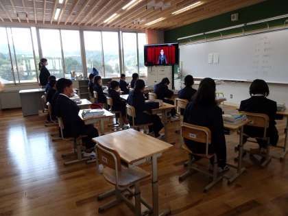 新しい教室で,着任式・始業式にリモートで参加した後,学年集会を行いました。