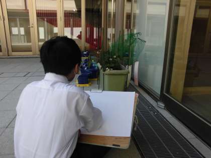 「あ,つながってる。」と,花や葉がつるでつながっている様子を見つけて描いていました。来週,色付けをする頃には,また少し生長をしているのかもしれません。
