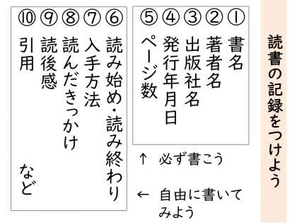 読んだ本や読みたい本、日常で出会ったすてきな言葉などを記録するために『読書ノート』を配布しています。読書は私たちをまだ見ぬ世界へ連れていってくれます。現実の世界では体験できないことも、本の中では体験できます。また、語彙力や読解力もつきます。本当に良いことづくしです。