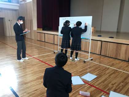 学活の時間に学年目標を決めました。8年生のリーダー会(学級長・副学級長)が中心となって、話し合いをしています。