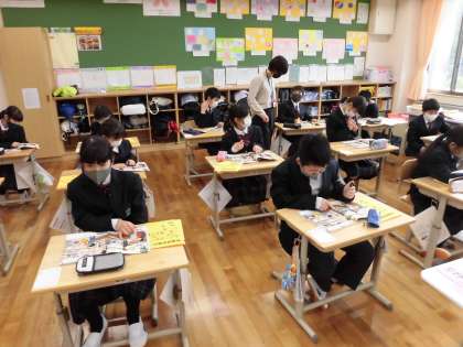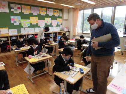 When is your birthday?「誕生日はいつですか。」と尋ね,My birthday is…「私の誕生日は…」と答える学習をしています。子どもたちは,月の言い方や日にちの言い方に慣れ親しむことができました。
