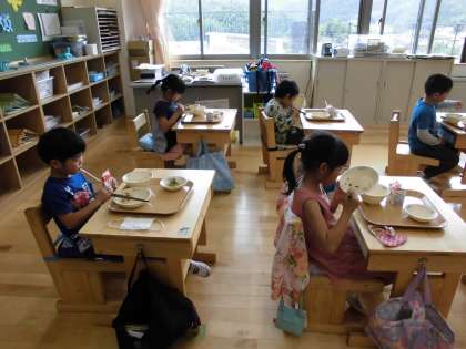 給食の準備や,おしゃべりをせずに静かに食べることに1年生も少しずつ慣れてきました。