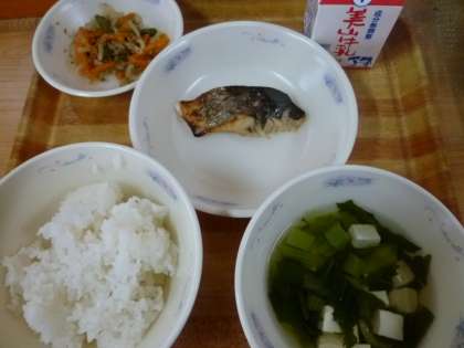 今日はスチームコンベクションオーブンを使った献立です。さわらをしょうゆとみりん,砂糖,ゆず果汁を混ぜ合わせたものに漬け込んでから,焼きました。江戸時代の茶人「北村祐庵」がゆずをつかった調味液に魚や肉を漬け込んで焼く料理を考案したので,このような料理には「ゆうあん焼」と名前がつくことが多いです。