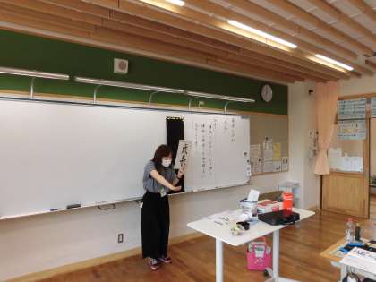 書写の学習では,毛筆で「成長」を書いています。習った漢字ですが,改めて確認すると筆順を間違えて覚えていることに気付いた子どもたち。正しい筆順が整った字形につながることを実感しました。