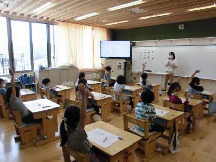 6月の「けんこうの日」の取組として,栄養教諭と一緒にカルシウムについて学習しました。