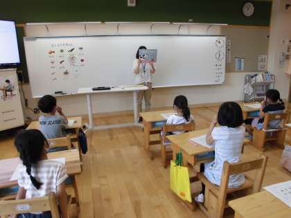 どのような食べ物にカルシウムが多く含まれているのか,紙芝居を聞きました。