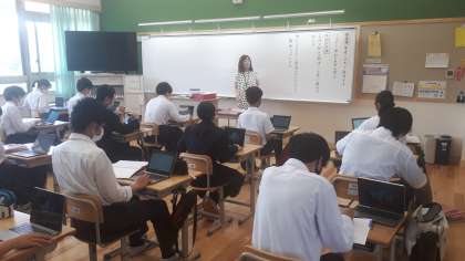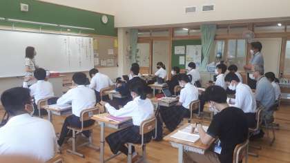 より良い授業が行えるよう,各教員が授業を参観しました。8年1組では,『筆者に代わって説明する。』の単元でクマゼミ増加の原因を探るため,生徒たちはパソコンを活用し,全体と部分の構成に注意をし,構成を捉えていました。