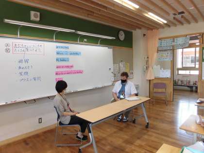 Unit2「When is your birthday?」の単元のゴールとして,パフォーマンステストをしました。ALTの先生や後期課程の外国語の先生に,誕生日や誕生日に欲しい物を尋ねたり答えたりしました。子どもたちはとても緊張していましたが,「Smile」「Eye Contact」「Clear Voice」「Response」の4つを意識して頑張っていました。