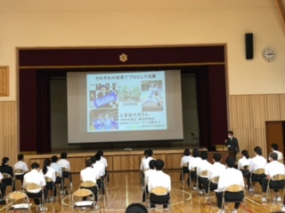 本日,5時間目に進路説明会がありました。公立高校を代表して北桑田高等学校が,私立高校を代表して京都先端科学大学附属高等学校の先生が,それぞれ話をしてくださいました。