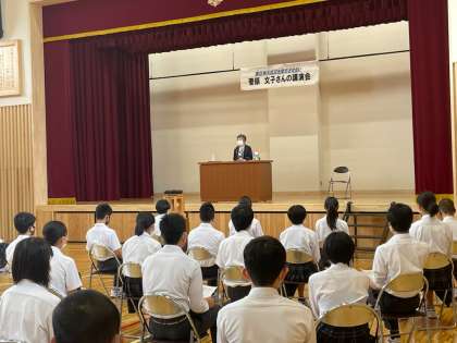 本日は,宮城県気仙沼市から菅原文子さんをお招きし,東日本大震災で体験されたことや本校の生徒に伝えたいことなどをお話しいただきました。生徒たちは,実際に体験されたお話を,真剣なまなざしで聞き入っていました。それぞれ,感じたことをご家庭でも聞いていただければと思います。