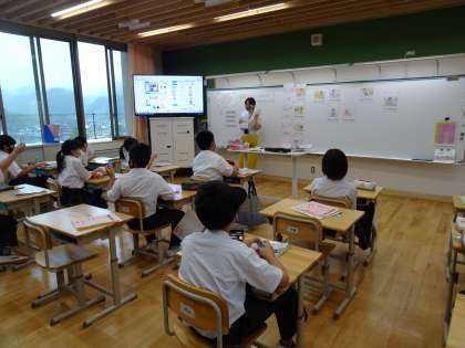 後期課程の先生にも,例を示してもらったり単語を一緒に確認したりして楽しく学習を進めています。