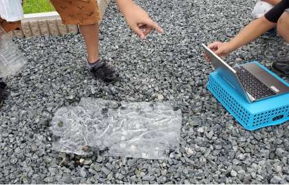 理科では雨水が流れていく様子,しみこんでいく様子,蒸発していく様子を観察,実験して確かめ,地面の傾き,土の粒の大きさ,温度による影響に関係があるということを結論付けました。