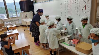 4月ごろは,エプロンの着替え方から教えていたのに,今ではちゃんと当番もできるようになっています。
