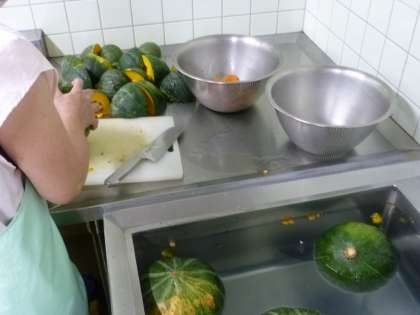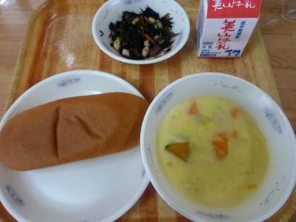 かぼちゃのクリームシチューは,とても好評で,残菜もなく,生徒からも「かぼちゃがとろとろしていておいしかった。」という感想が聞けました。