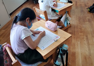 子どもたちは事前にしっかりと勉強をしていますが,いざテストになると,緊張するようです。静かな教室に,鉛筆が走る音だけが聞こえていました。