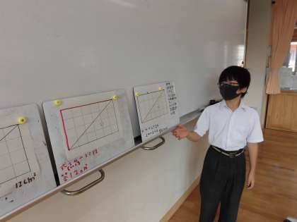 これまで正方形や長方形の面積は学習してきました。5年生では,まず直角三角形の面積を求めます。補助線を引いて長方形にしたり,直角三角形を2つくっつけて長方形にしたりして面積を求めることができました。また,自分の考えをみんなの前で説明することもできました。