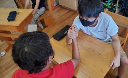 この日は,腕相撲をしたときに起こる変化について気付いたことを出し合いました。