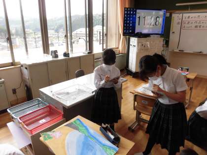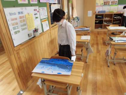 絵が完成したので,鑑賞会をしました。「作品に触らない。」「静かに鑑賞する。」などの鑑賞のマナーをしっかり守っていました。友達の作品のいいところや工夫しているところをたくさん見つけて,鑑賞カードに書きました。
