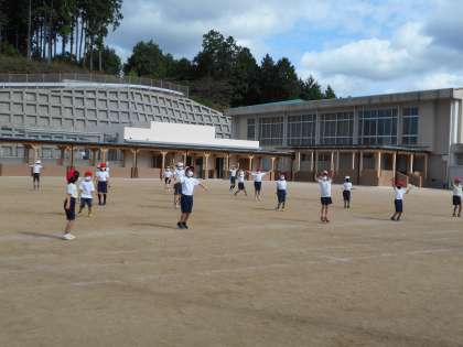 体育の時間は1年生,2年生,3組の合同で行いました。運動会に向けて,ダンスの練習をしました。今日は,自分のポジションの確認や,曲の間の動きを確認しました。はじめは場所を覚えるのに苦労している様子でしたが,回数を重ねるにつれ,上手に移動が出来るようになってきました。