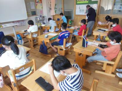 10月14日(木)情報モラル教室では,「スマートフォンとのつきあい方」というテーマで学習しました。先日のアンケート結果から,個人でスーマートフォンを持っている子どもは少なかったので,今後スマートフォンを使うようになった時にどうするのかを前提に考えました。京都市情報モラル市民インストラクターの方と協力して,トラブル事例の動画教材をもとに問題点を整理し,その解決方法をグループで話し合いました。その後に,スマートフォンと,より良くつきあうためにどうしていくかを考えました。子どもたちは,「使う時間をルールで決める。」や「SNSを使う時には,相手の事を考えて文章を送る。」,「困ったことがあったら近くの大人に相談する。」等の意見がでました。スマートフォンを使う時には,今日の学習の事を思い出して使ってほしいです。