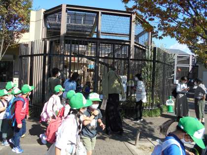 動物園につくと,まずはみんなで動物園を一周しました。よく知っている動物の前では,「知ってる!」「シマウマや!」など,盛り上がっていました。一通り回った後は,午後の自由行動に向けての練習をしました。30分間班で行動し,時間通りに戻ってくることが出来ました。