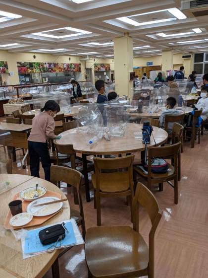 生活係さんが台をしっかり拭いています。気持ちがいいです。